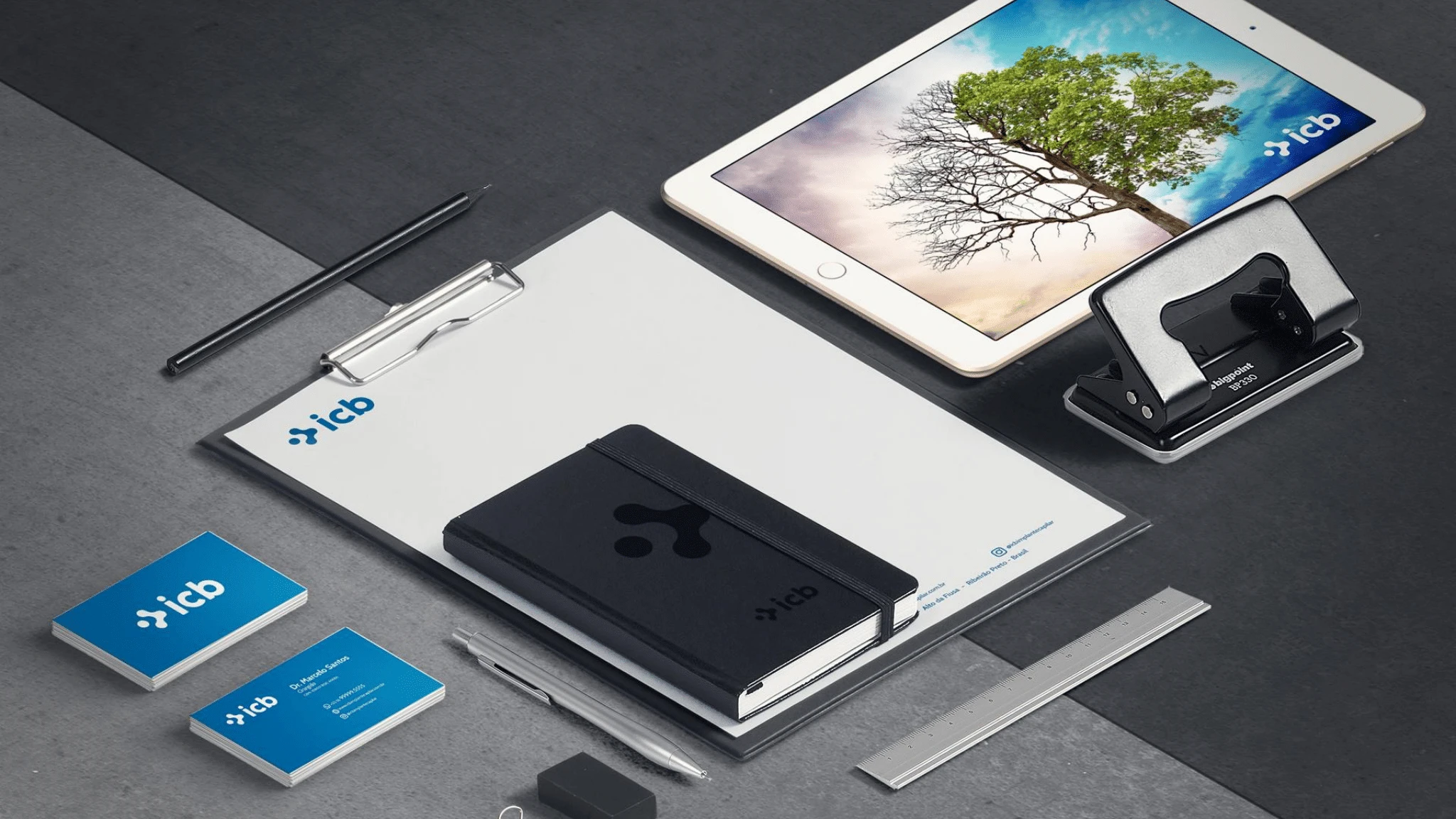 In this project, the goal was to incorporate hair transplant details into the identity and showcase the seriousness, quality, and strength of icb within the industry.